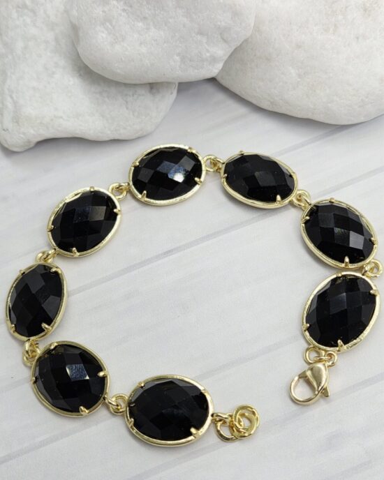 Βραχιόλι Χειροπέδα με Διακοσμητικές Πέτρες από Ανοξείδωτο Ατσάλι σε Χρυσό Τόνο