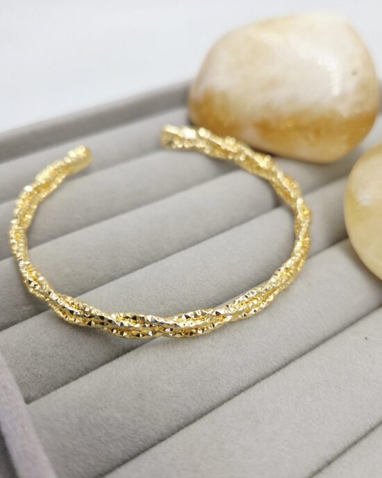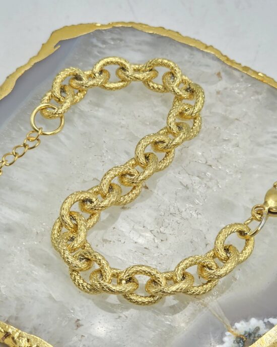 Βραχιόλι Σταθερό με Ανάγλυφη Υφή από Ανοξείδωτο Ατσάλι σε Χρυσό Τόνο