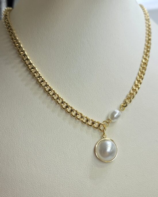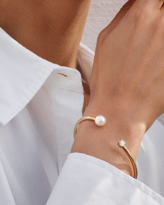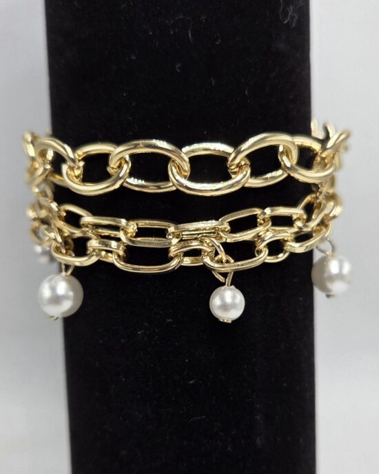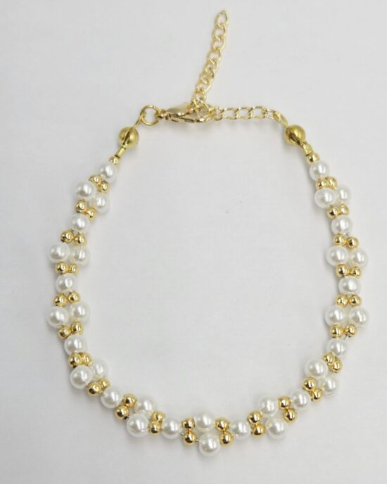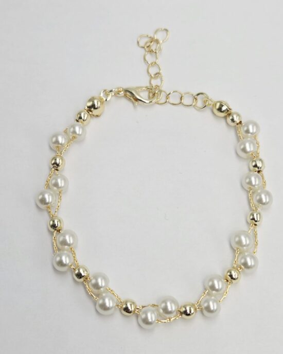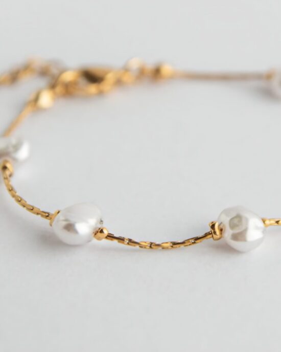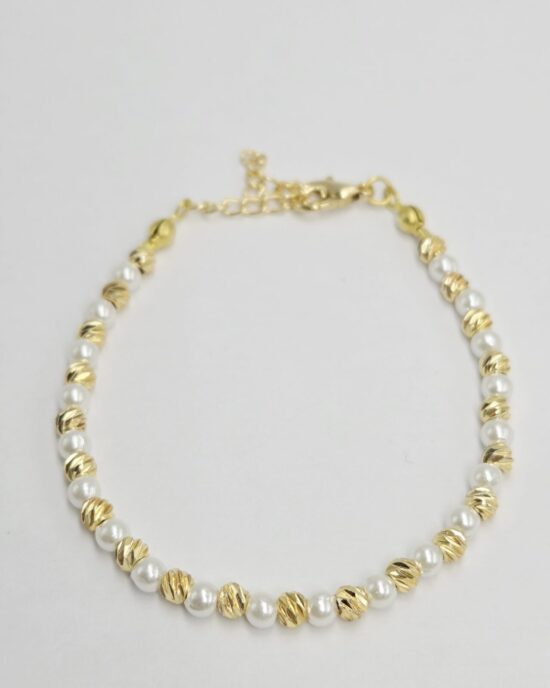 Βραχιόλι με Πέρλες και Διακοσμητικές Μπίλιες από Ανοξείδωτο Ατσάλι σε Χρυσό Τόνο