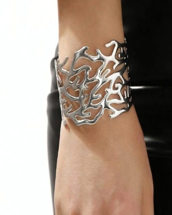 Βραχιόλι από Ανοξείδωτο Ατσάλι σε Ασημί Τόνο με Abstract Σχέδιο