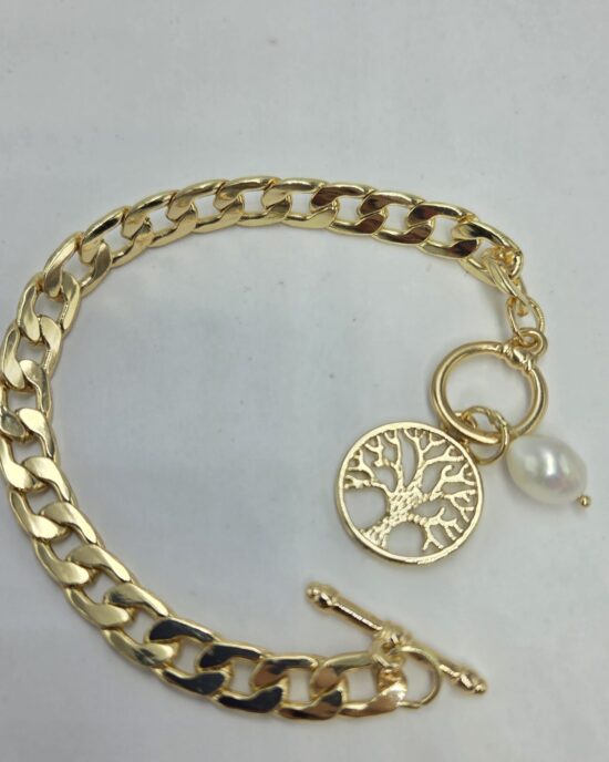 Βραχιόλι Αλυσίδα με Στοιχείο Δέντρο Ζωής από Ανοξείδωτο Ατσάλι σε Χρυσό Τόνο