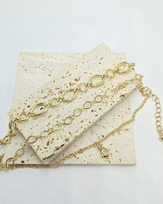 Βραχιόλι Πολυστρωματικό με Αλυσίδες από Ανοξείδωτο Ατσάλι σε Χρυσό Τόνο