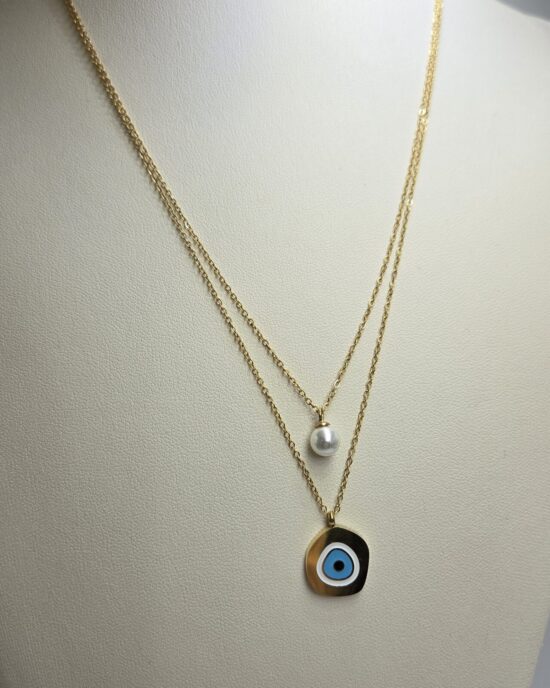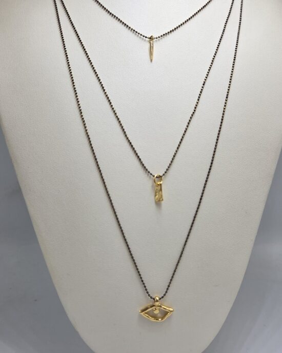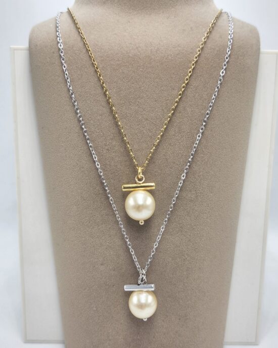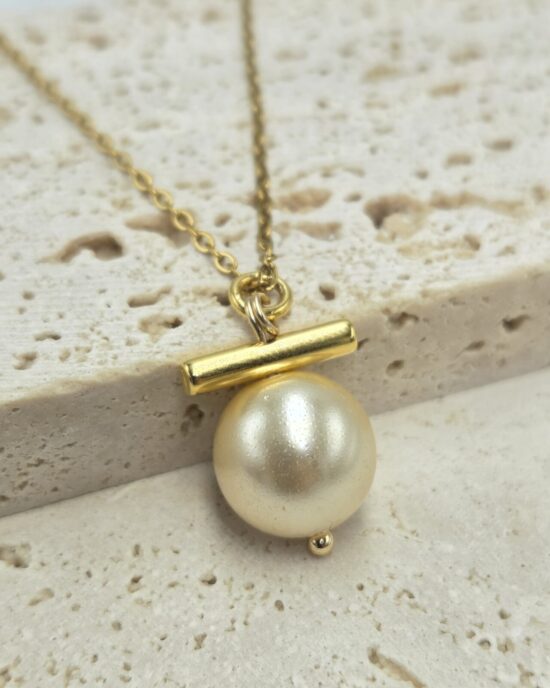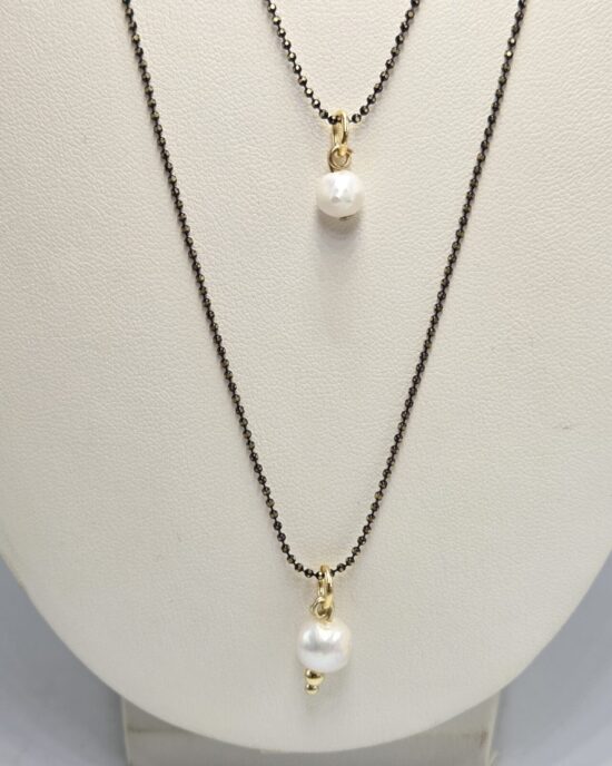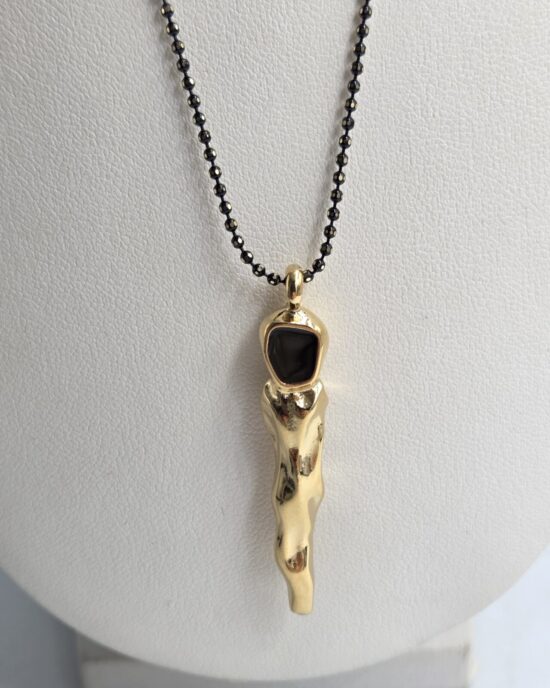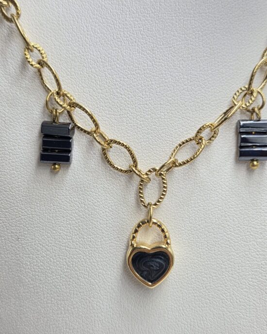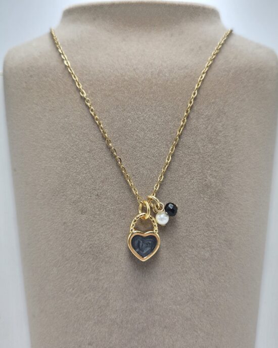 Μενταγιόν Ανοξείδωτο Ατσάλι σε Χρυσή Απόχρωση με Μαύρη Καρδιά & Charm Πέρλα
