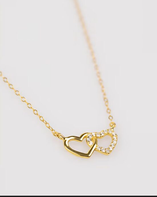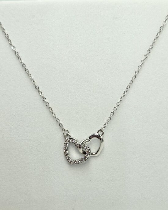 Κολιέ Διπλή Καρδιά με Ζιργκόν από Ανοξείδωτο Ατσάλι σε Ασημί Τόνο
