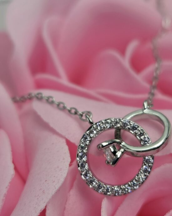 Κολιέ Κύκλοι με Ζιργκόν από Ανοξείδωτο Ατσάλι σε Ασημί Τόνο