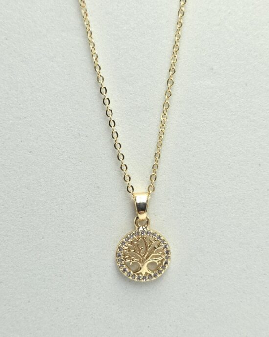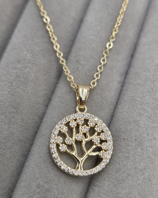 Μενταγιόν Δέντρο της Ζωής με Λεπτομέρειες Ζιργκόν από Ανοξείδωτο Ατσάλι σε Χρυσό Τόνο