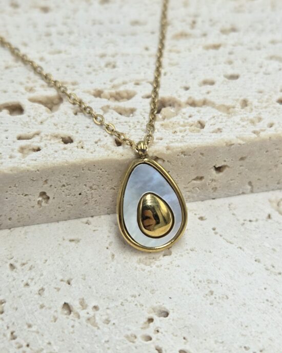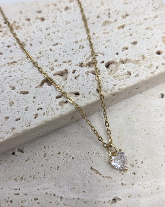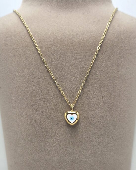 Μενταγιόν Ανοξείδωτο Ατσάλι σε Χρυσή Απόχρωση με Λευκή Καρδιά