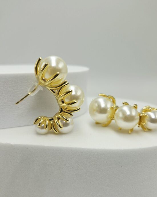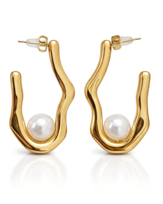 EDBLAD Gold Tone Σκουλαρίκια με Πέρλα & Sculpted Design