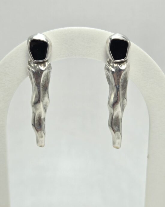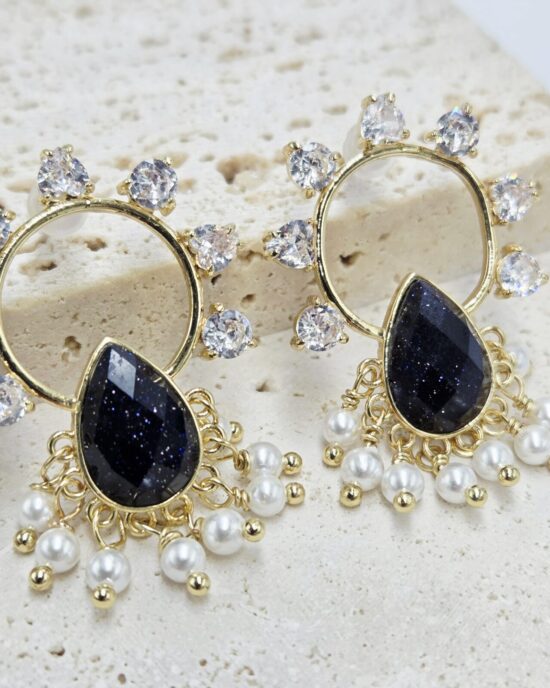 Εντυπωσιακά Σκουλαρίκια με Μαύρη Πέτρα, Ζιργκόν και Πέρλες σε Χρυσή Απόχρωση