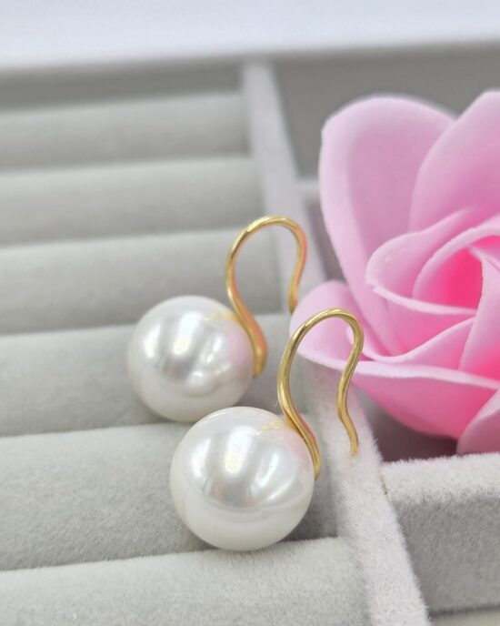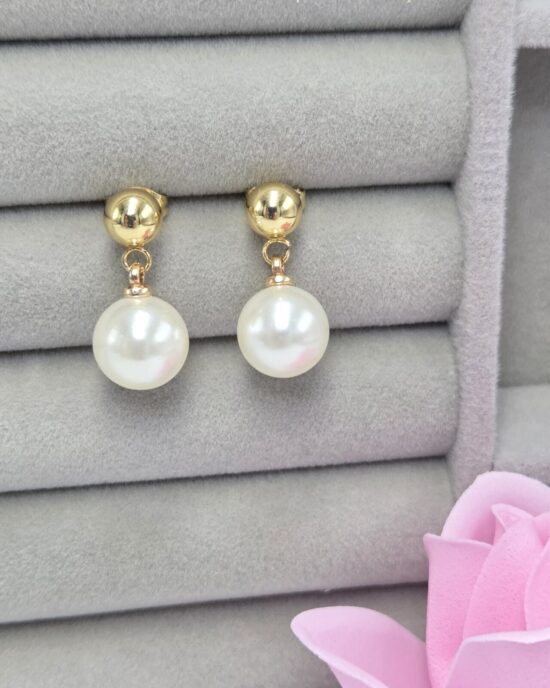Κρεμαστά Σκουλαρίκια Κύκλος με Pearl Charm – Ανοξείδωτο Ατσάλι, Χρυσός Τόνος