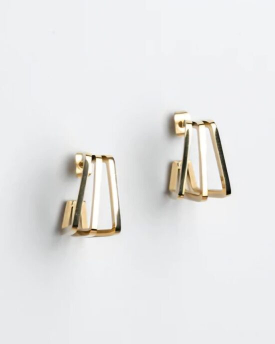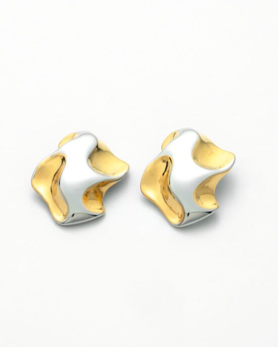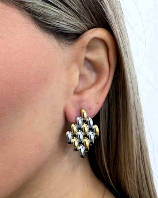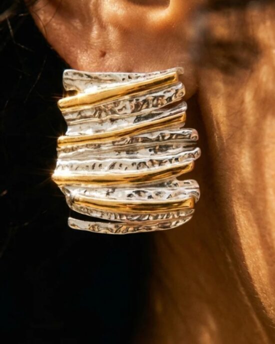 Διχρωμα Σκουλαρίκια Από Ανοξείδωτο Ατσάλι Με Geometric Κρίκους Σε Χρυσό Και Ασημί Τόνο