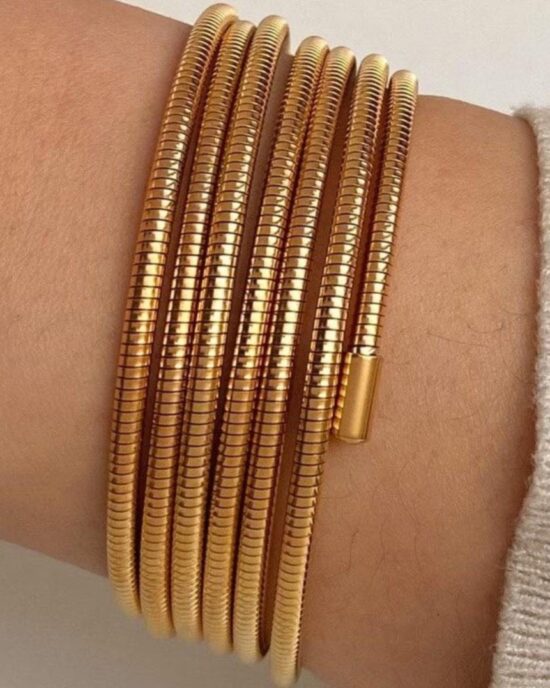 Γυναικείο Ατσάλινο Βραχιόλι Snake Coil σε Χρυσή Απόχρωση – Stainless Steel Wrap Bracelet
