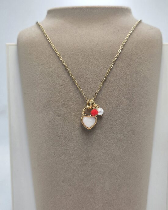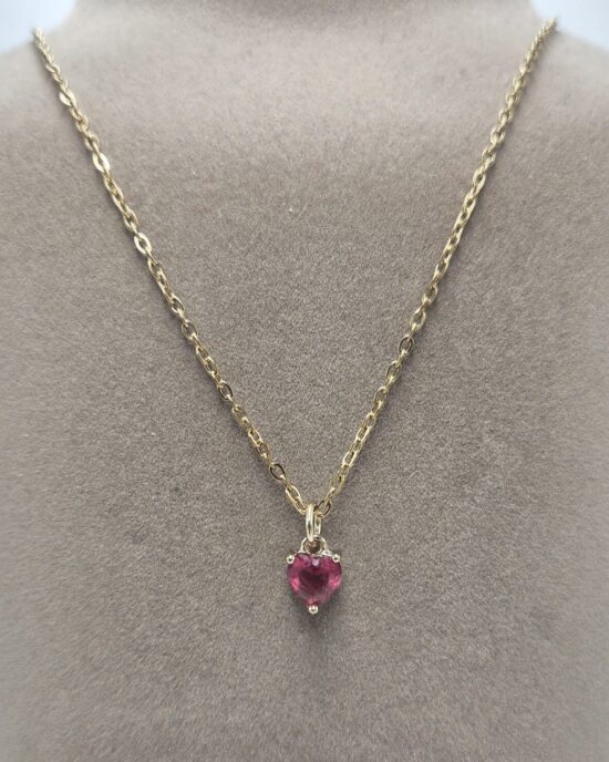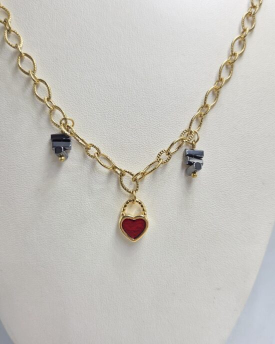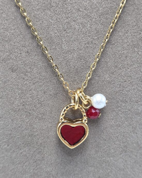 Μενταγιόν Ανοξείδωτο Ατσάλι σε Χρυσή Απόχρωση με Κόκκινη Καρδιά