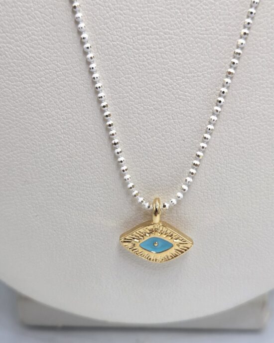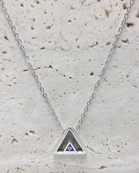 Μενταγιόν Ανοξείδωτο Ατσάλι σε Ασημί Απόχρωση με Τριγωνικό Μοτίφ & Μάτι