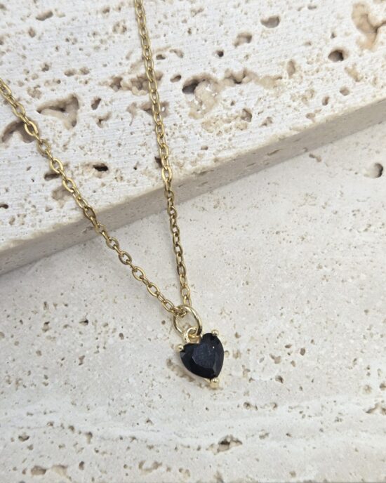 Μενταγιόν Καρδιά από Ανοξείδωτο Ατσάλι με Μαύρο Στοιχείο & Κρύσταλλα – Silver Heart Enamel Necklace