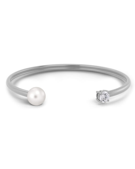 Βραχιόλι Χειροπέδα με Διακοσμητικές Πέτρες από Ανοξείδωτο Ατσάλι (Ασημί Τόνος)
