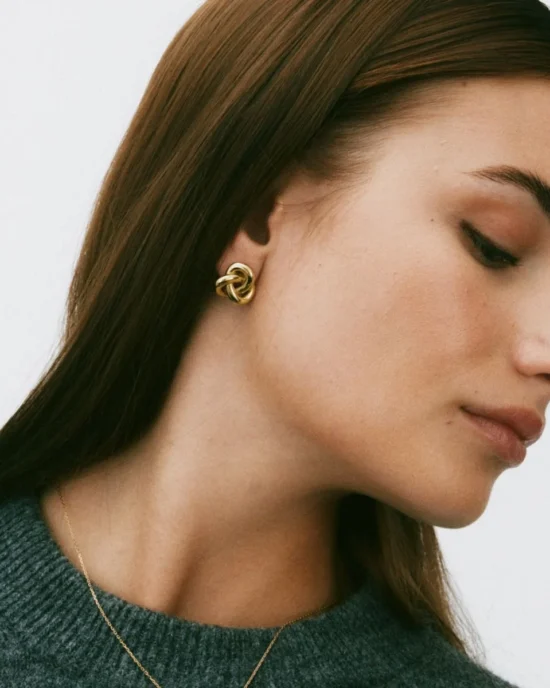 EDBLAD Gold Tone Twisted Hoop Stud Earrings Stainless Steel