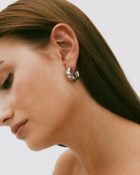 EDBLAD Silver Tone Twisted Hoop Earrings Stainless Steel