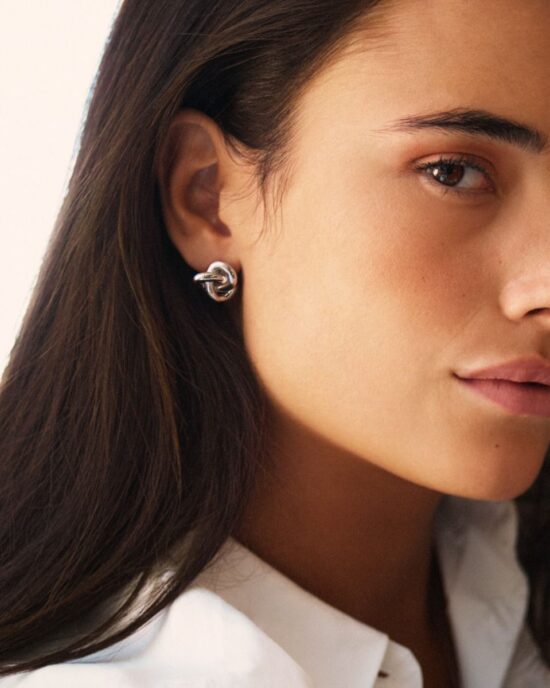 EDBLAD Silver Tone Interlocked Rings Stud Earrings Stainless Steel